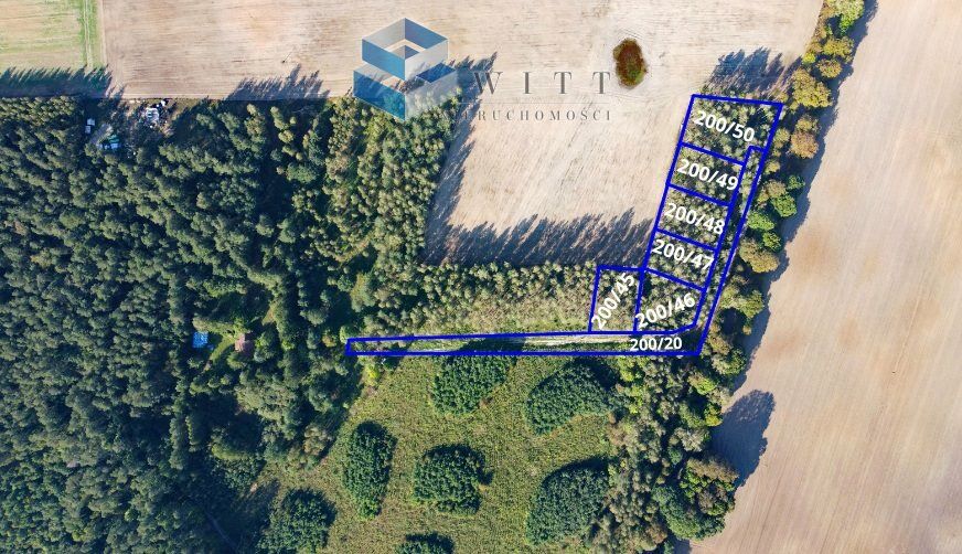 - działek nr 200/45 o pow. 1148m2 , 200/46 o pow. 1393m2 , 200/47 o pow. 1252m2 , 200/48 o pow. 1307m2 , 200/49 o pow. 1363m2, 200/50 o pow. 1859m2 każda w cenie 70 zł/m2,